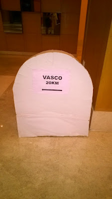 The lobby of the restaurant shows the way to reach Ithaca with sign boards having names of the places from Goa.